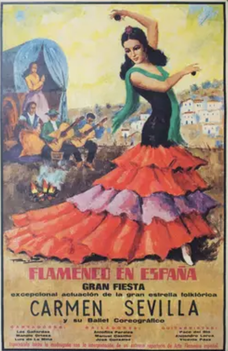 Pero fue en 1950 que el régimen franquista empezó a necesitar el dinero. Por eso, promovieron el flamenco para impulsar la industria turística española. El régimen aumentó el número de locales que representaban el arte flamenco, animó a artistas flamencos profesionales a protagonizar en películas de Hollywood, y anunció bailaoras flamencas en folletos turísticos.